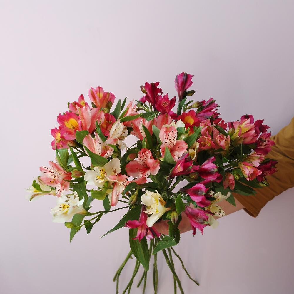 Лента атласная – 1 шт.альстромерияа – 11 шт.