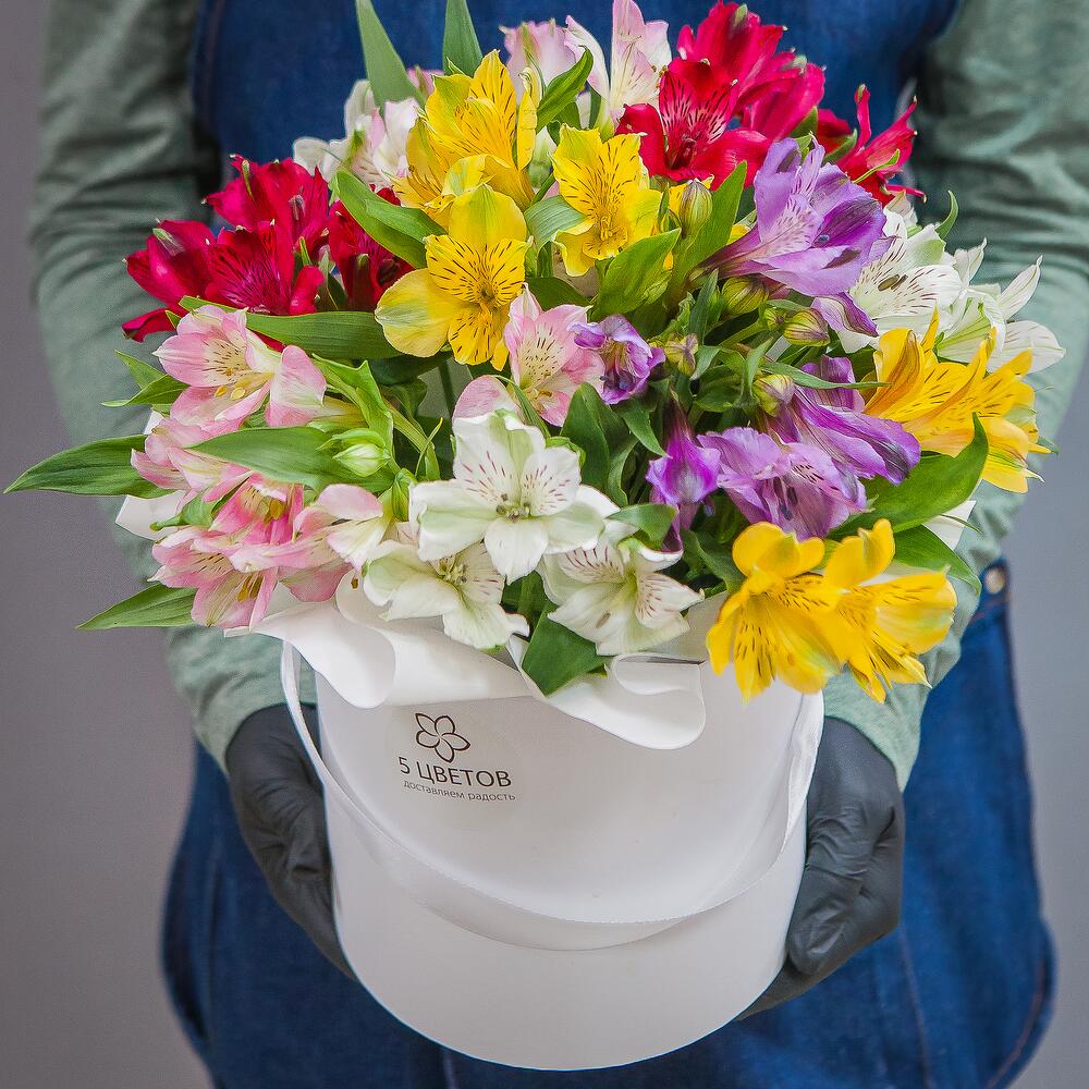 Букет из 9 альстромерий в шляпной коробке