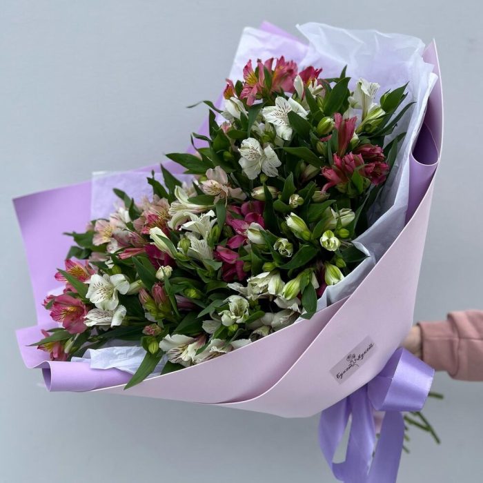Альстромерия – 31 шт.Лента атласная – 1 шт.Тишью – 3 шт.Фоамиран (упаковка) – 3 шт.