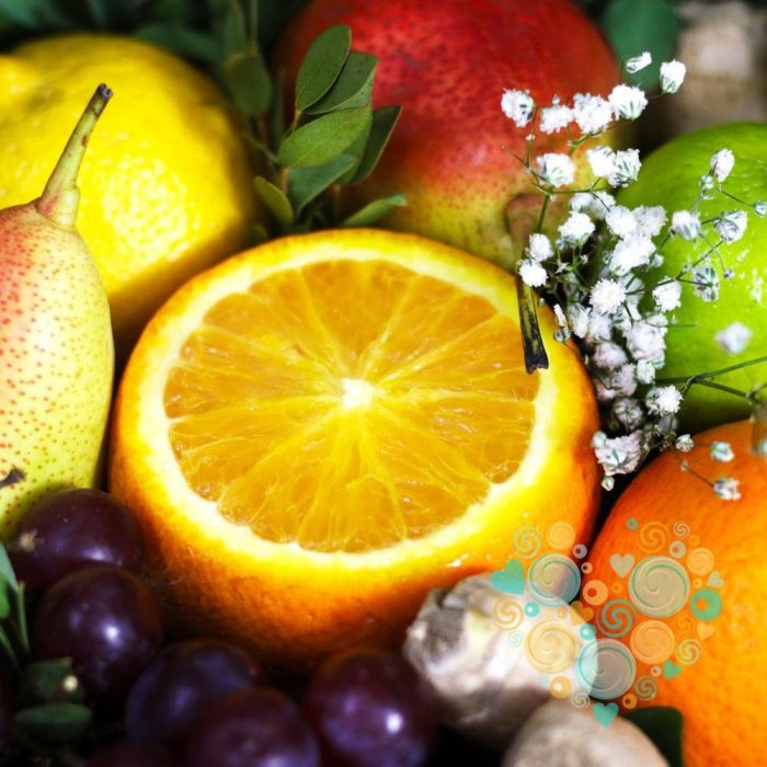 яблоко красное – 1 шт.Апельсин – 1 шт.Груша – 1 шт.Лайм – 1 шт.Виноград гроздь – 1 шт.Имбирь корень – 2 шт.Фисташка – 1 шт.Гипсофила – 1 шт.Шпажки деревянные – 20 шт.Крафт – 2 шт.Лента атласная – 2 шт.Лимон – 1 шт.