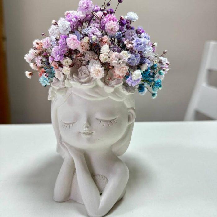 Кашпо из гипса с цветочной гипсофилой