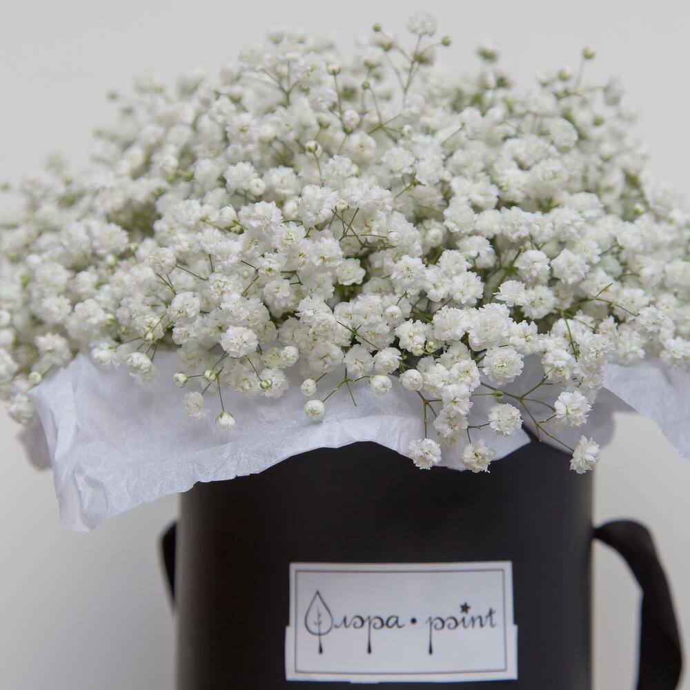 коробка шляпня – 1 шт.Оазис – 1 шт.Гипсофила – 8 шт.