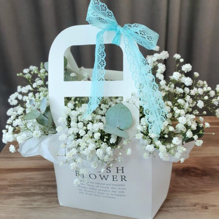 Сумочка с белоснежной гибсофилой и ароматным эвкалиптом