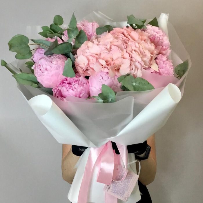 Букет с пионами и гортензией “Мечта”