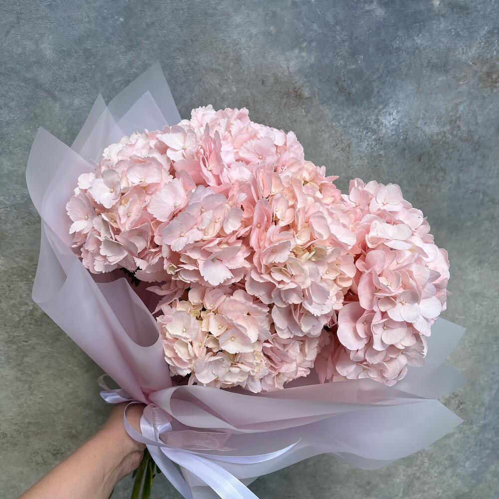 Букет с гортензией и розами "Ты мой мир"