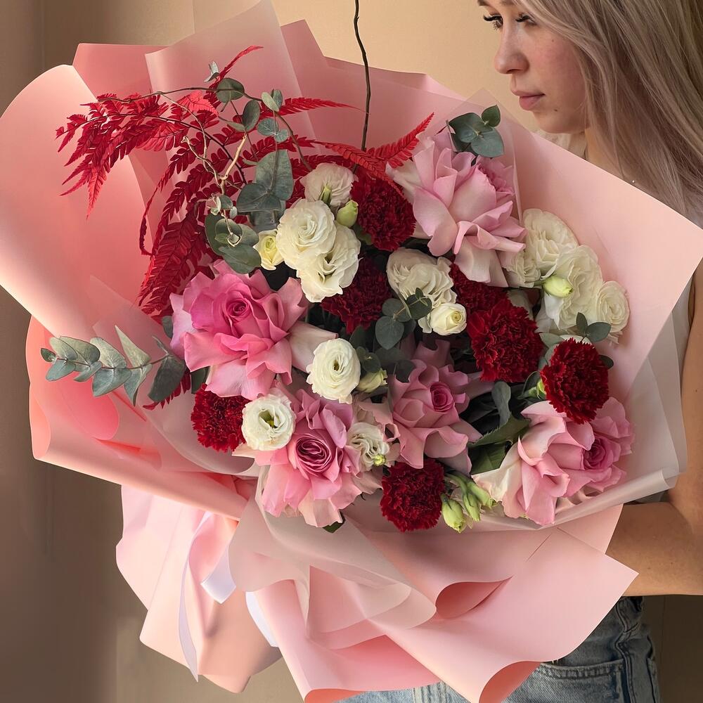 Гвоздики, Кустовые розы, Пионовидные розы, Розы