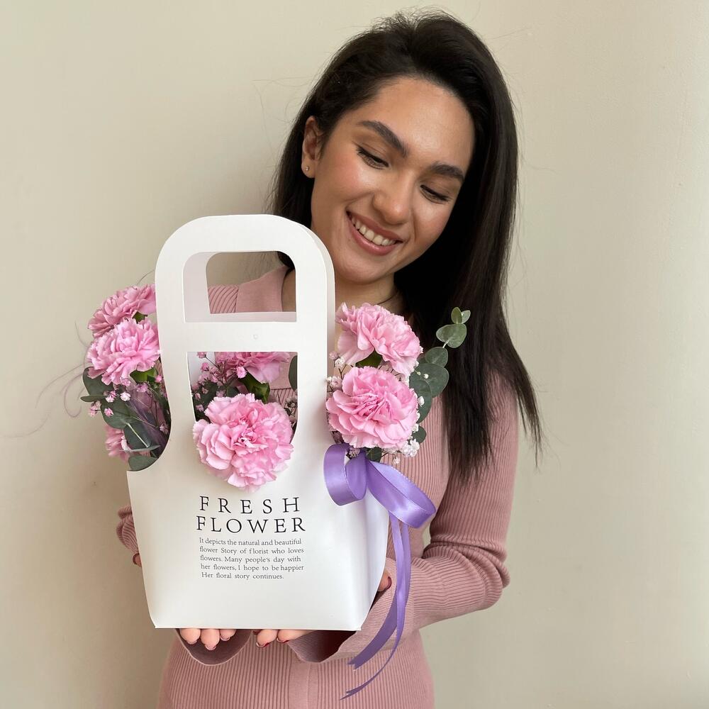 Розовые диантусы в стильном пакете