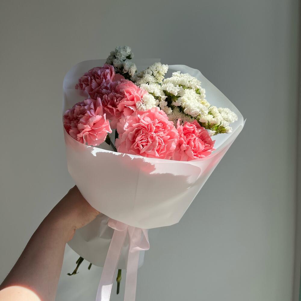 15 диантусов, лимониум и пальма