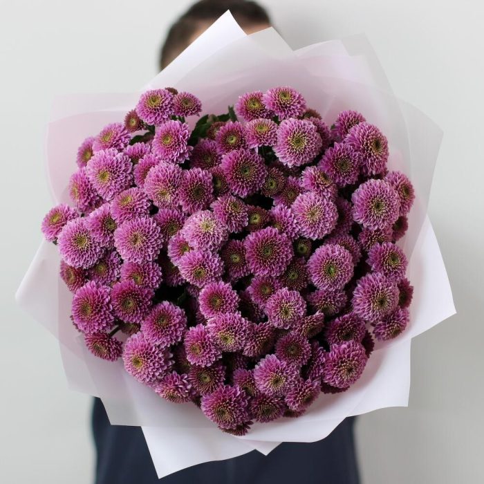 Хризантема Сантини – 21 шт.Лента атласная – 1 шт.Упаковка дизайнерская – 4 шт.