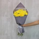 Букет из 9 желтых хризантем Анастасия в стильной упаковке