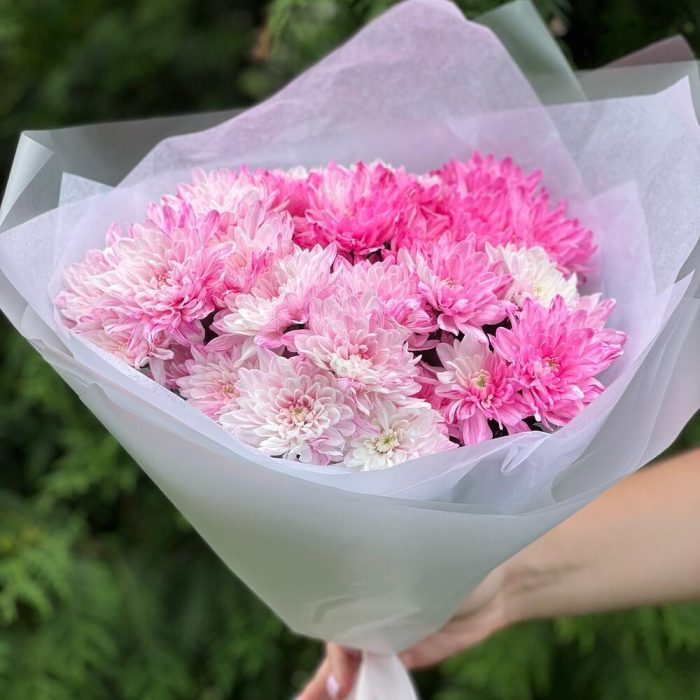 Хризантема крашеная – 5 шт.Пленка матовая – 1 шт.Тишью белое – 1 шт.