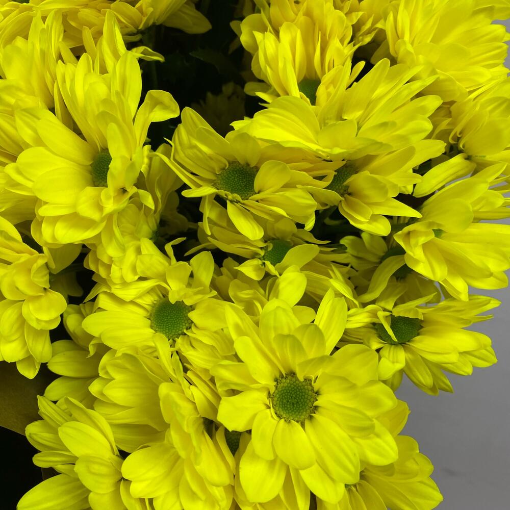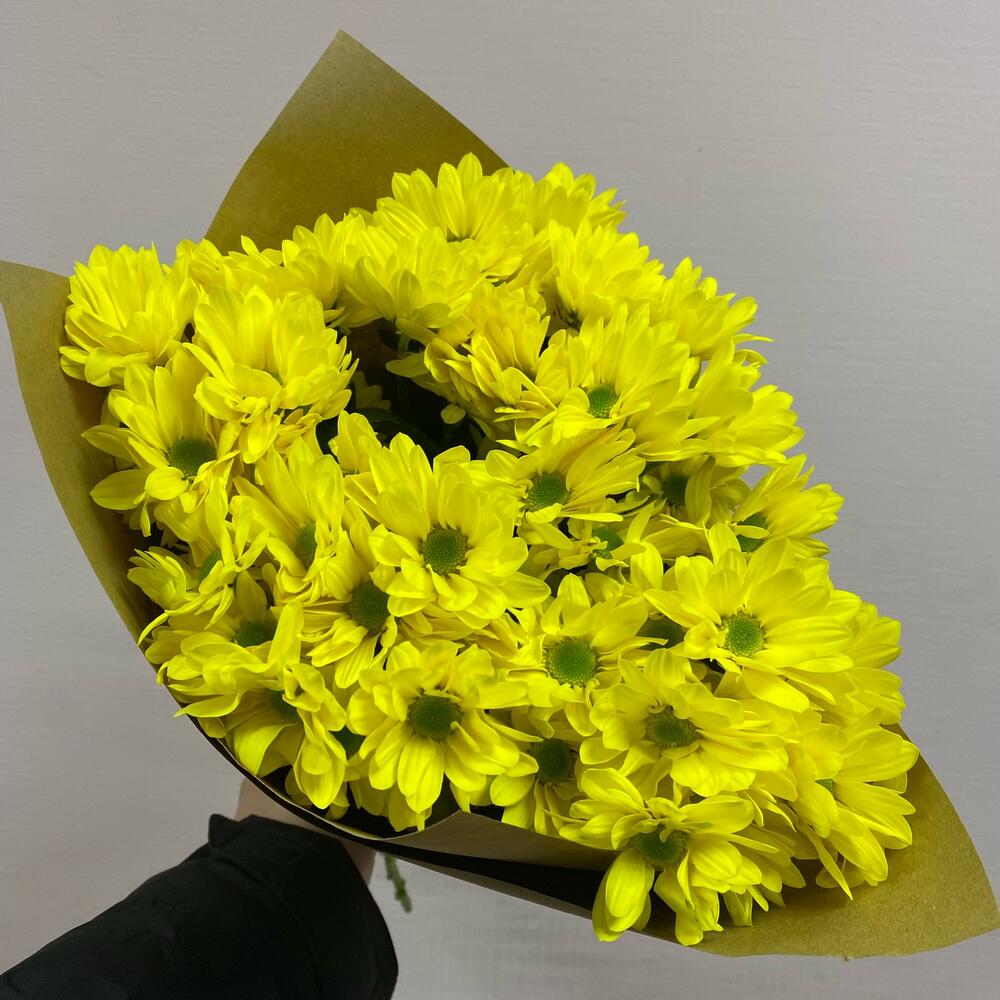 Хризантема кустовая желтая ромашковидная – 5 шт.Крафт упаковка – 1 шт.веревка декоративная – 1 шт.