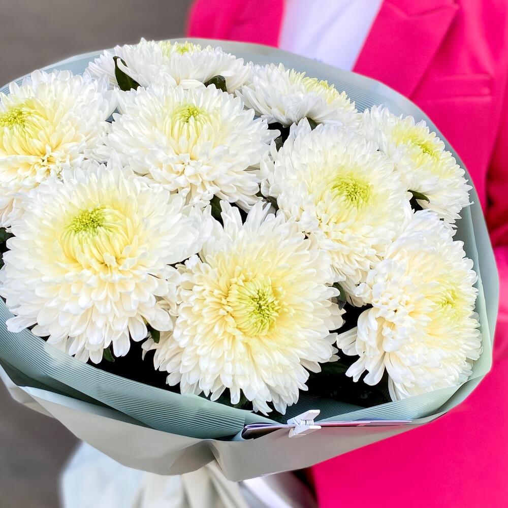 Монобукет с 9 белыми хризантемами