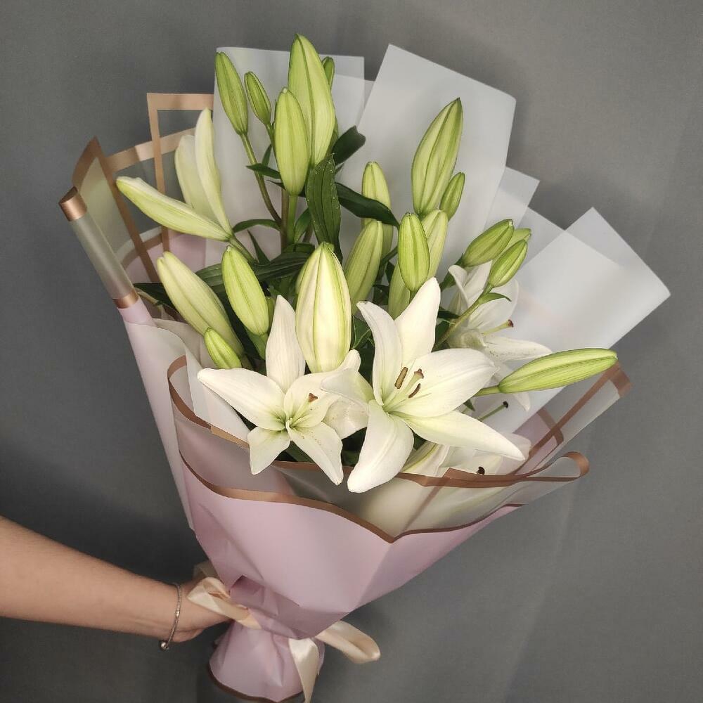 Лента – 1 шт.Пленка – 2 шт.Лилия белая – 5 шт.