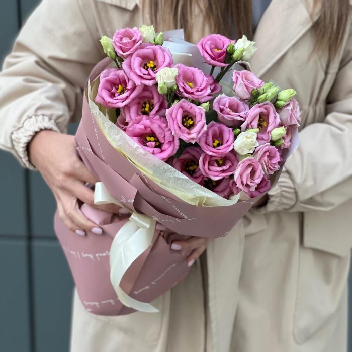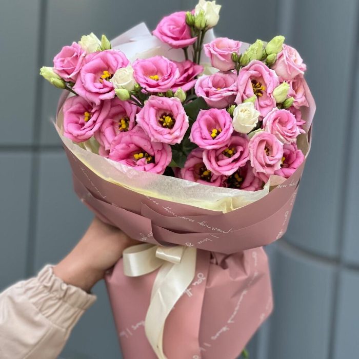 эустома розовая – 7 шт. Оформление – 1 шт.