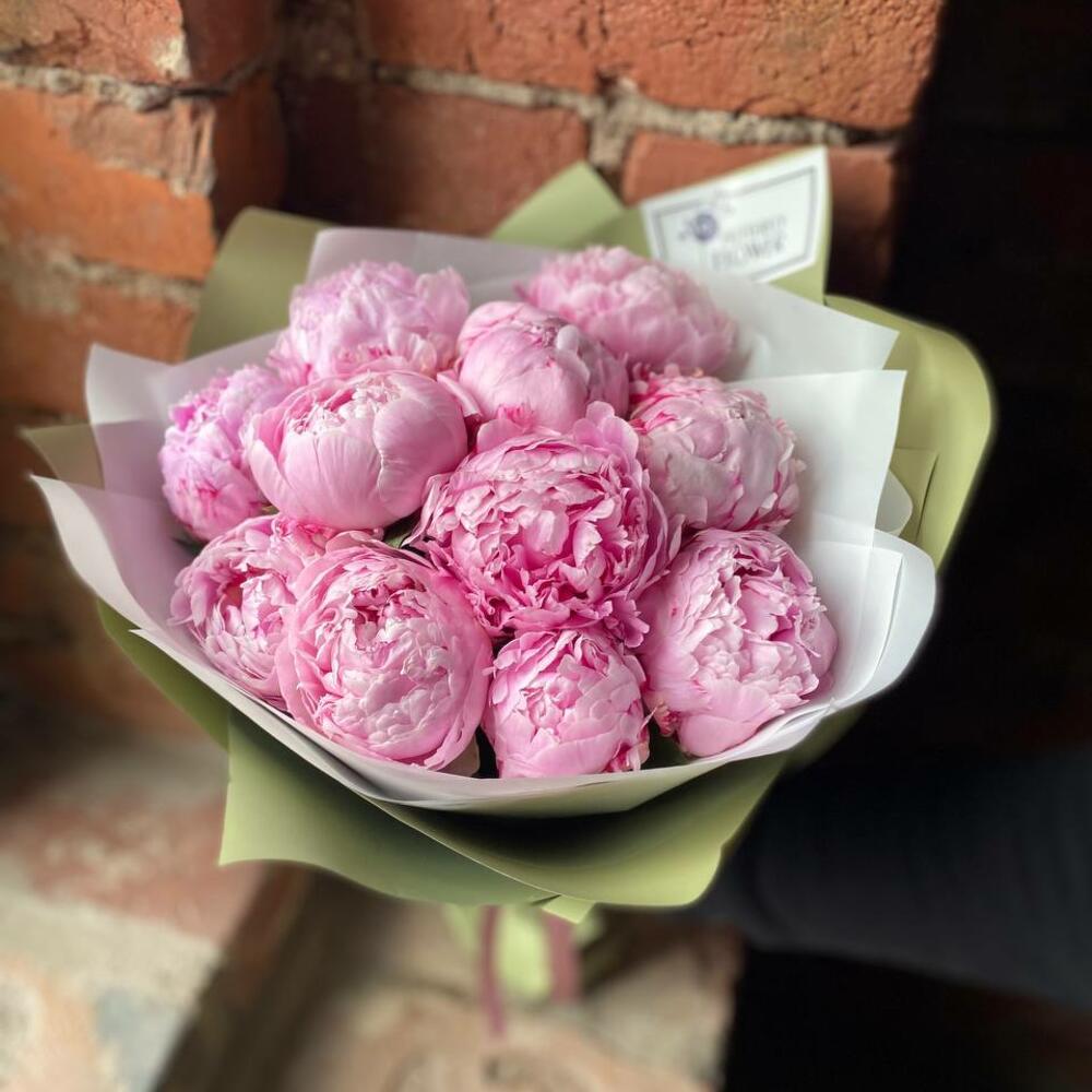 Букет из 11 пионов в дизайнерской упаковке “Джун Спринг”