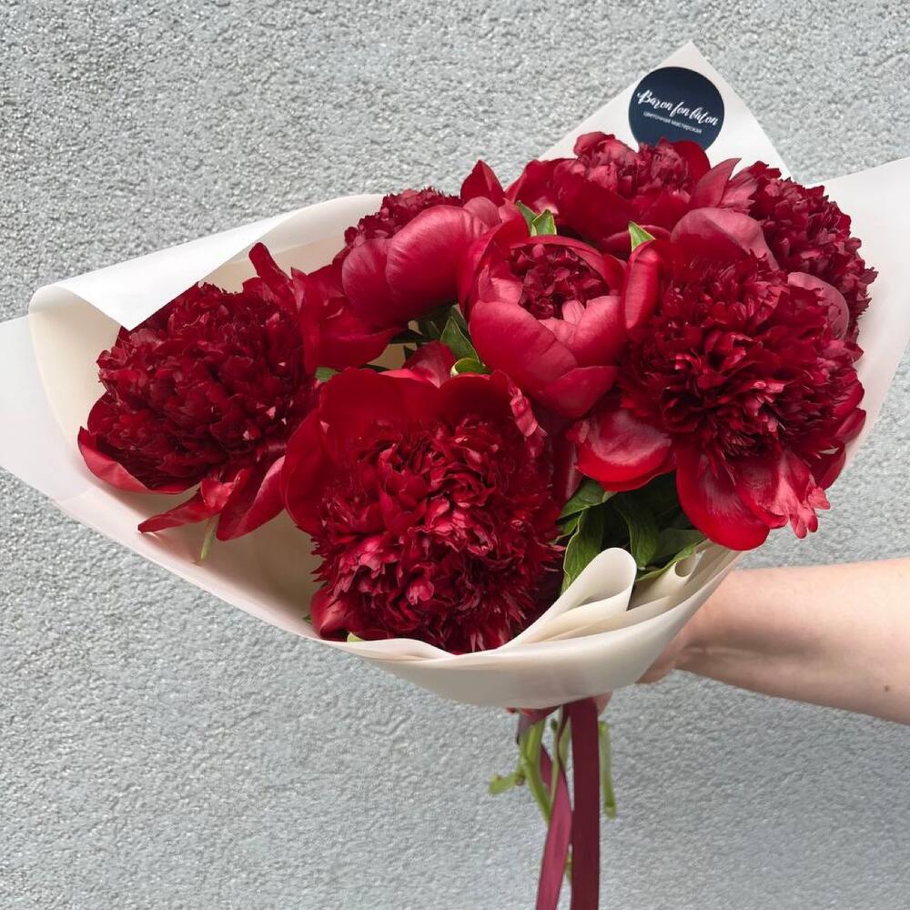 Букет из розовых пионов Premium 11 шт с эвкалиптом