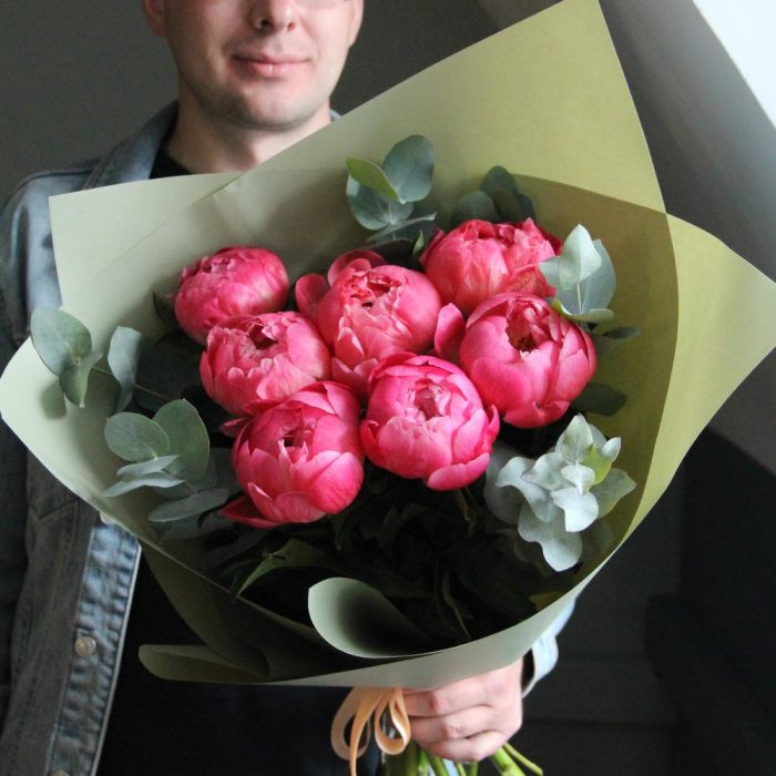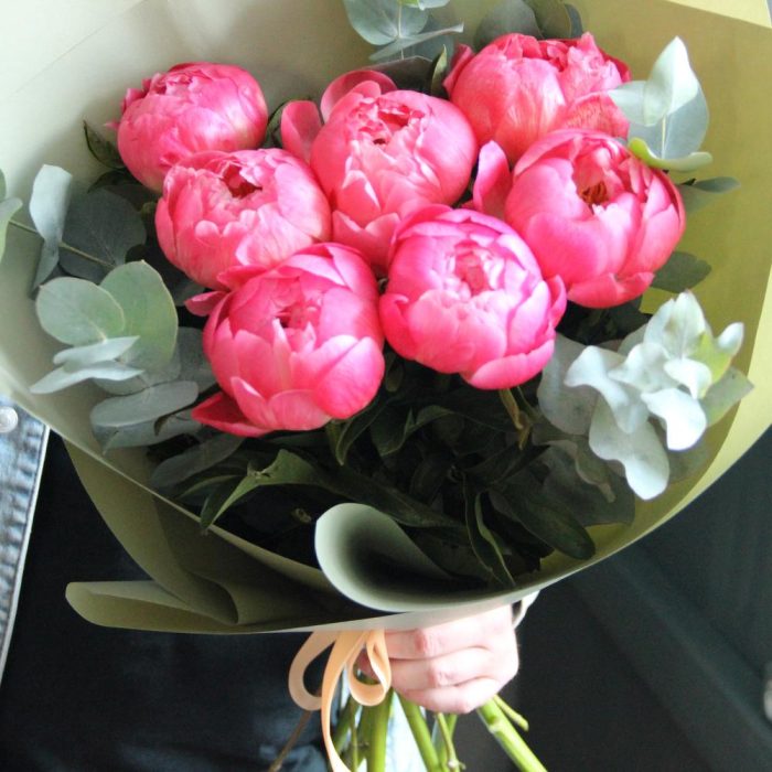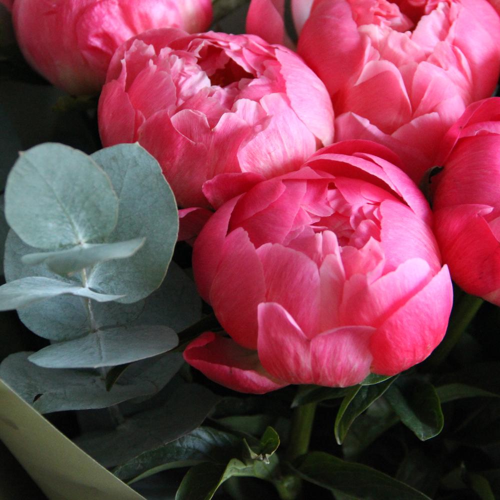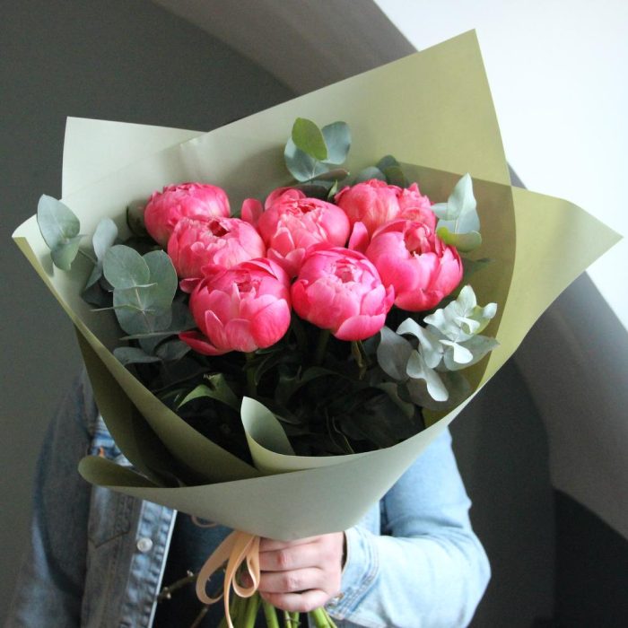 Коралловые пионы и эвкалипт