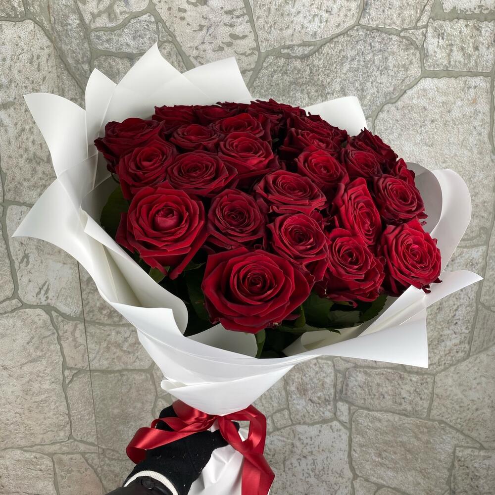 Роза 60 см – 35 шт.Упаковка – 3 шт.Атласная лента – 1 шт.