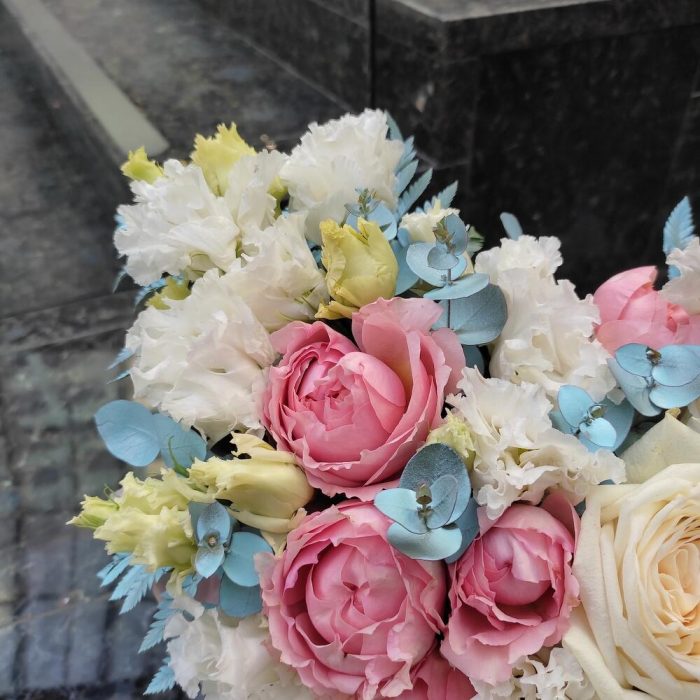 “Эвкалиптическая роскошь” гортензия и пионовидная кустовая роза