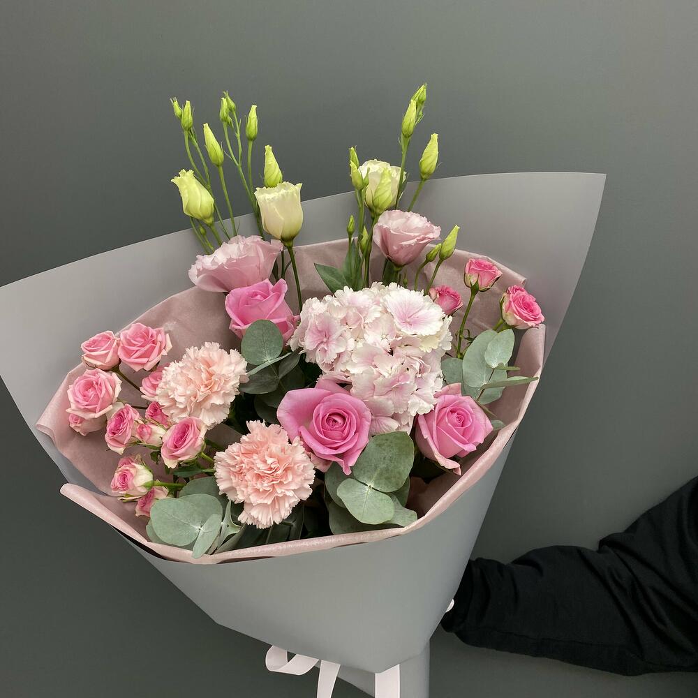 Гвоздики, Кустовые розы, Лизиантусы, Пионовидные розы, Розы