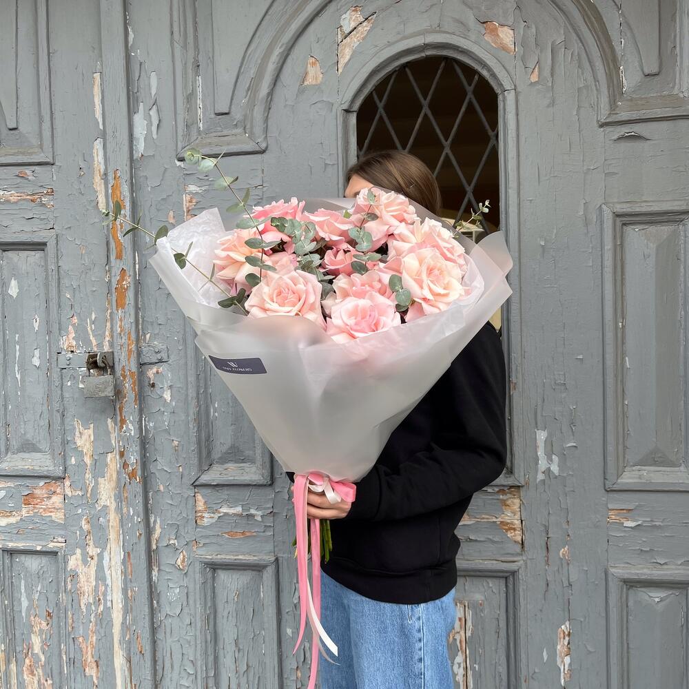 роза pink cloud – 11 шт.Эвкалипт – 1 шт.Упаковка дизайнерская – 2 шт.