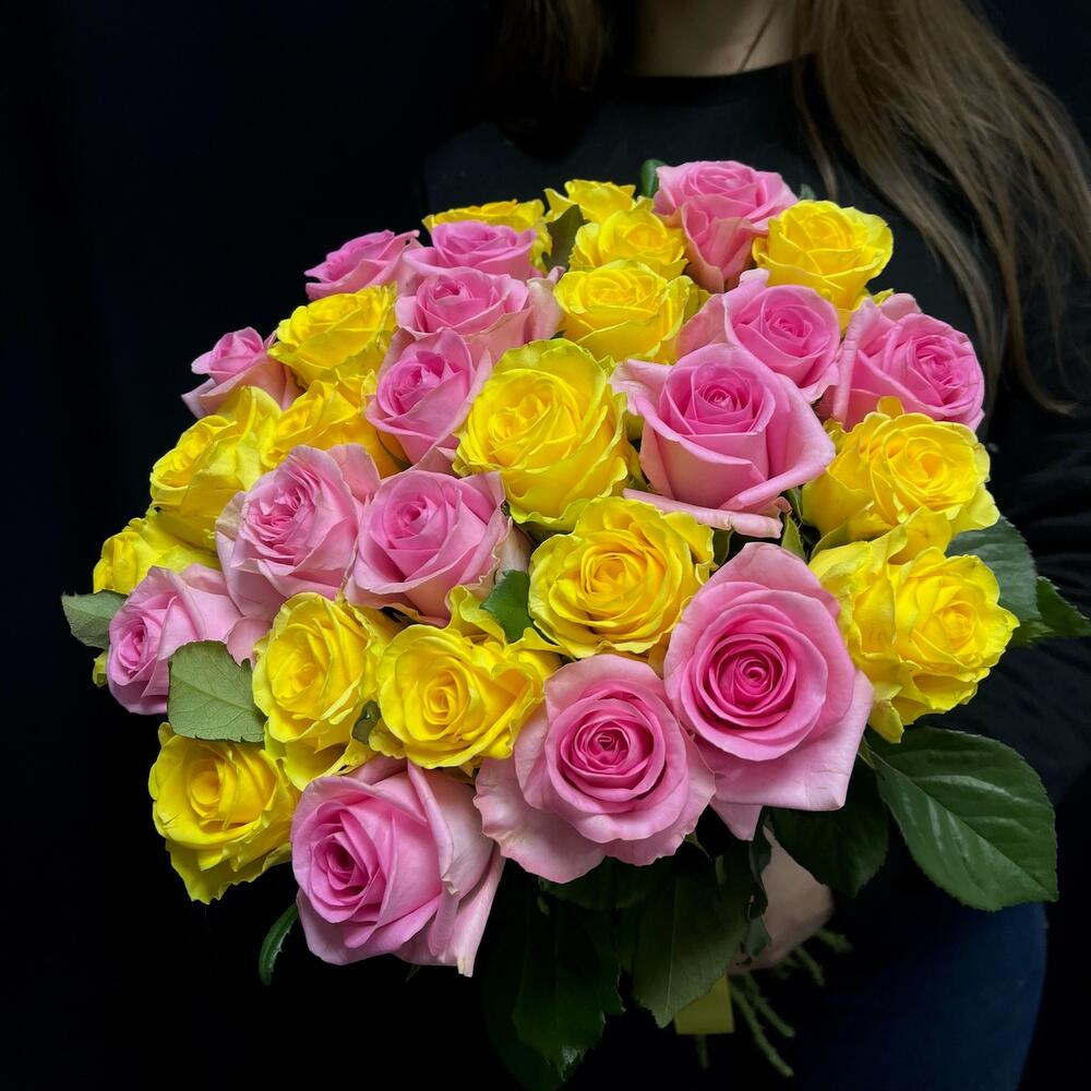 Букет из 31 желтой и розовой розы