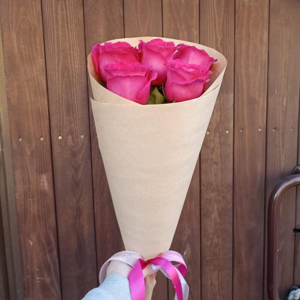 Роза Pink Floyd – 5 шт.Упаковка дизайнерская – 1 шт.Лента атласная – 1 шт.