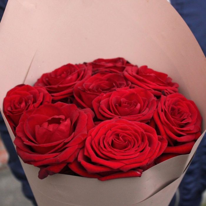Букет из 9 красных роз в стильной упаковке