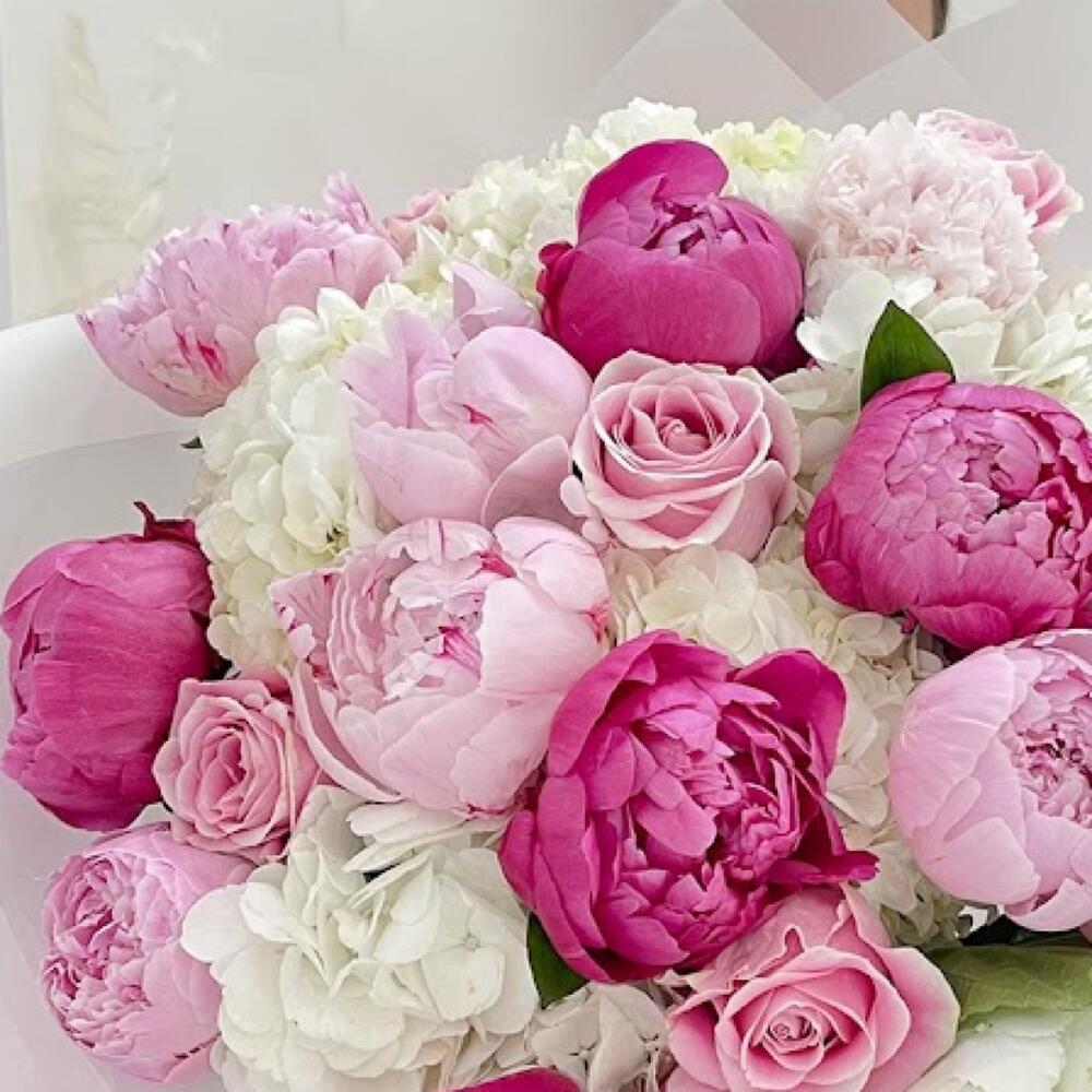 Букет из пионов, гортензии и розовых роз