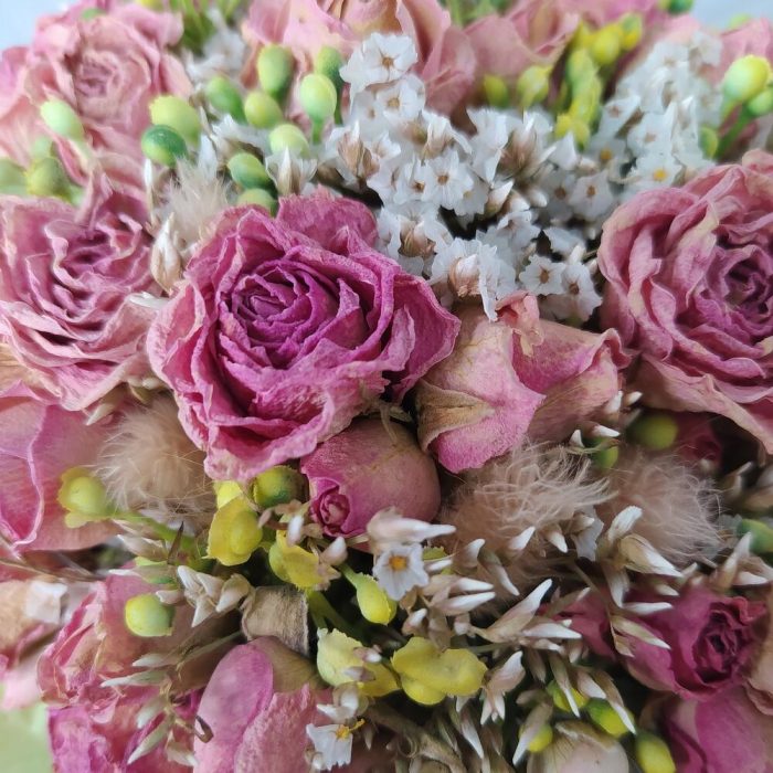 “Атлас☁️” – цветочная композиция с зефиром в деревянном ящике