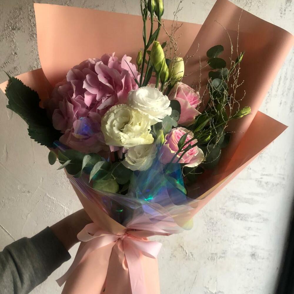 Гвоздики, Кустовые розы, Лизиантусы, Пионовидные розы, Розы
