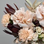 Элегантный свадебный букет в кремовой цветовой гамме. В составе французские розы, сортовая гвоздика, кустовая роза, экзотический леукадендрон и воздушная стифа.Флористы студии Цветочный Этикет собрали его из самых свежих цветов. Букет готов сиять красотой на всех фотография.