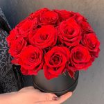 Роза красная – 19 шт.Оазис флористический – 1 шт.Шляпная коробка – 1 шт.