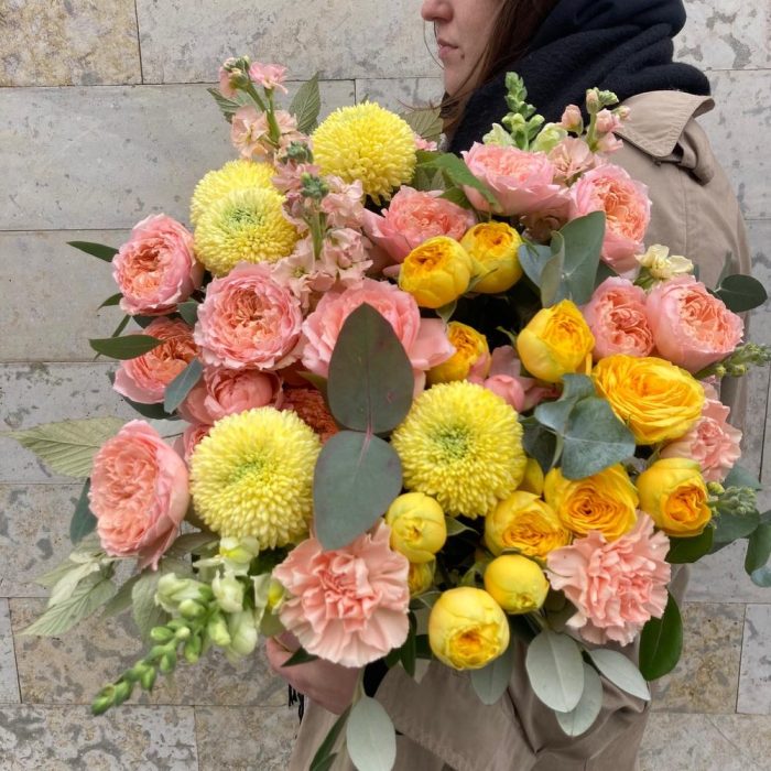 Категории: Кустовые розы, Пионовидные розы, Розы, Хризантемы