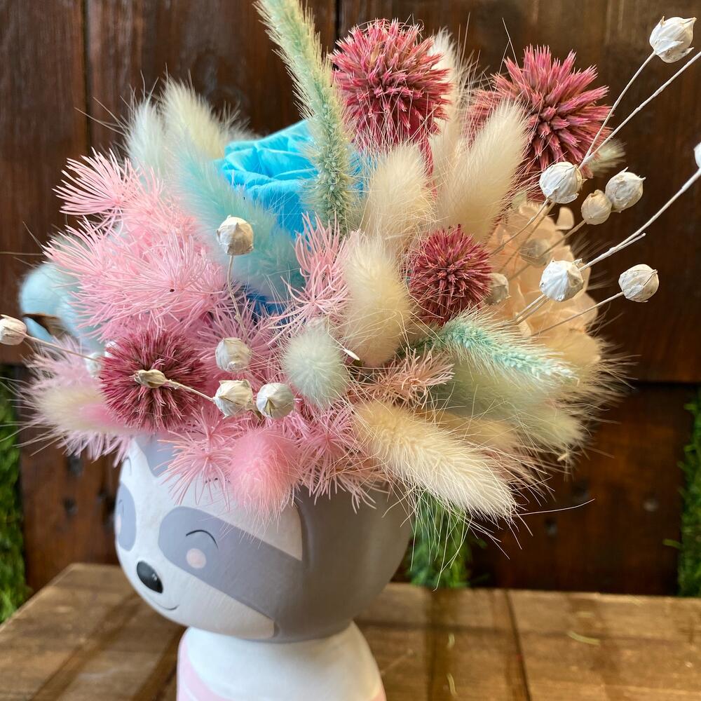 Сухоцветы – 15 шт.Роза стабилизированная – 1 шт.гортензия стабилизированная – 1 шт.Лагурус (сухоцвет) – 30 шт.