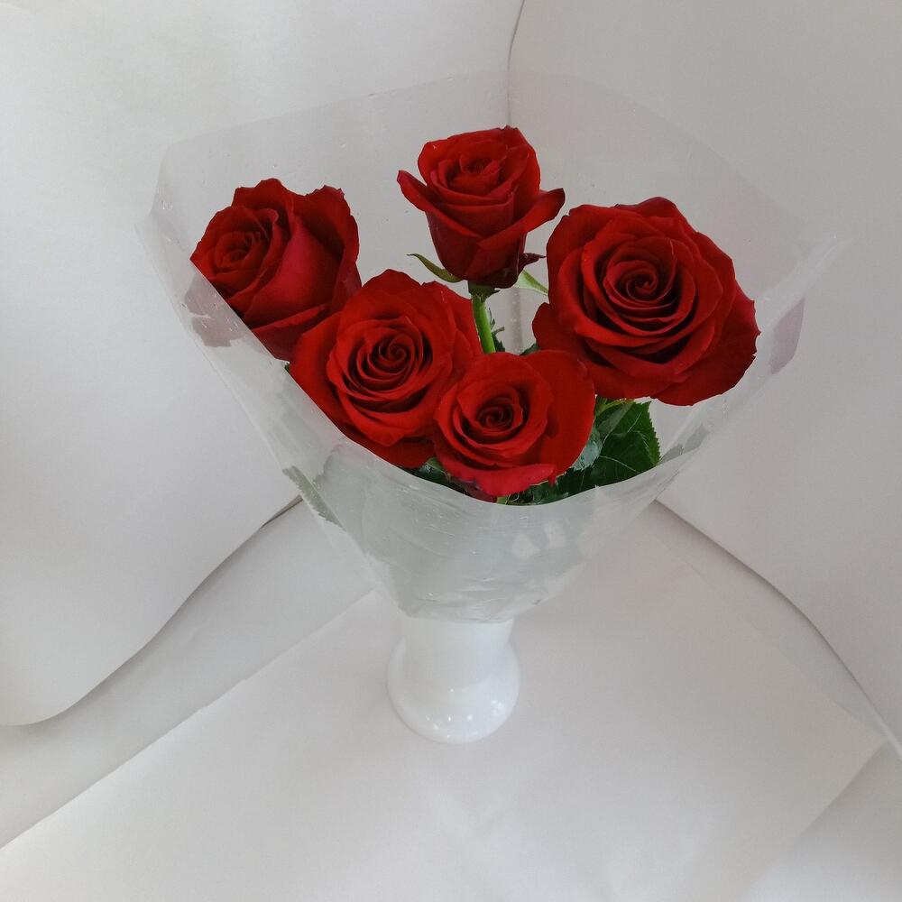 Роза красная 60 см – 5 шт.Прозрачная пленка – 1 шт.