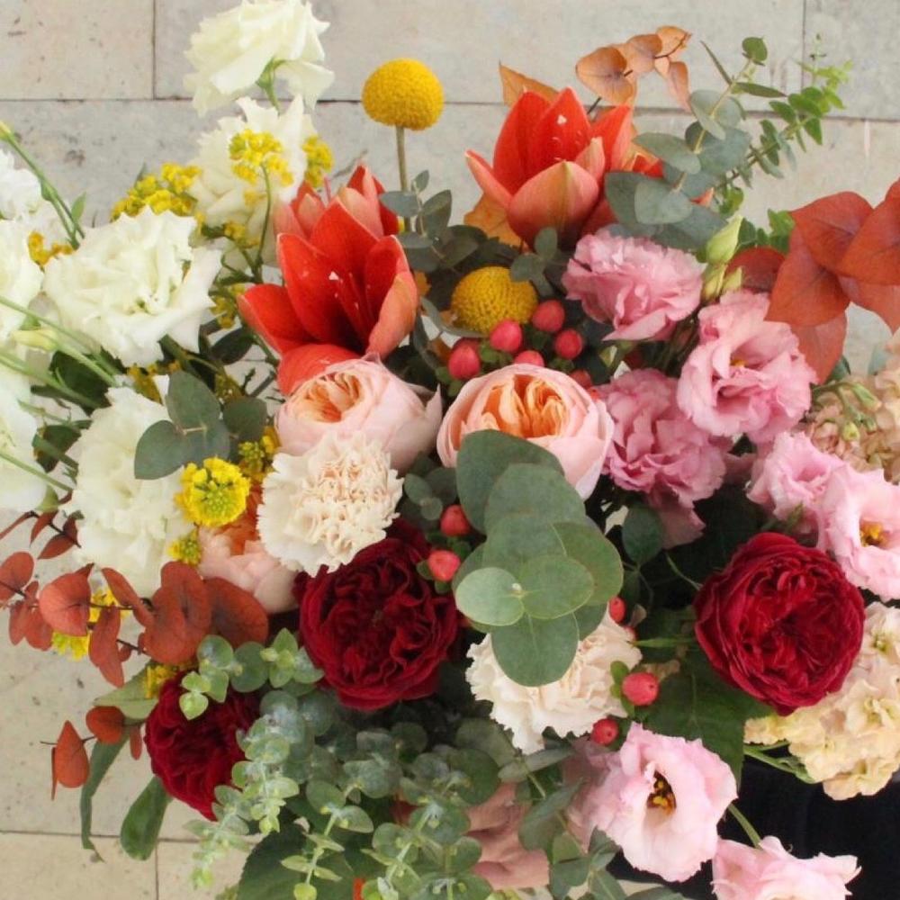 Кустовые розы, Лизиантусы, Розы, Сухоцвет