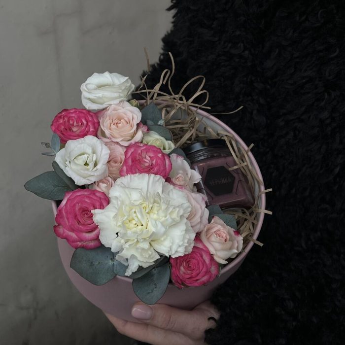 Розовая коробка с цветами и мёдом / 1361 id