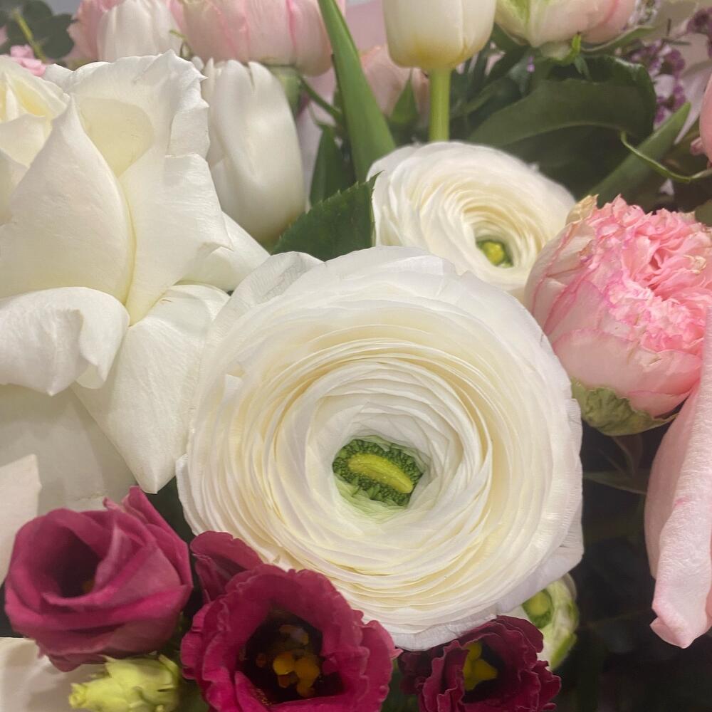 Сборный букет с ранункулюсами и пионовидной розой