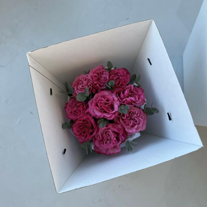 Пионовидная роза – 9 шт.Эвкалипт – 3 шт.