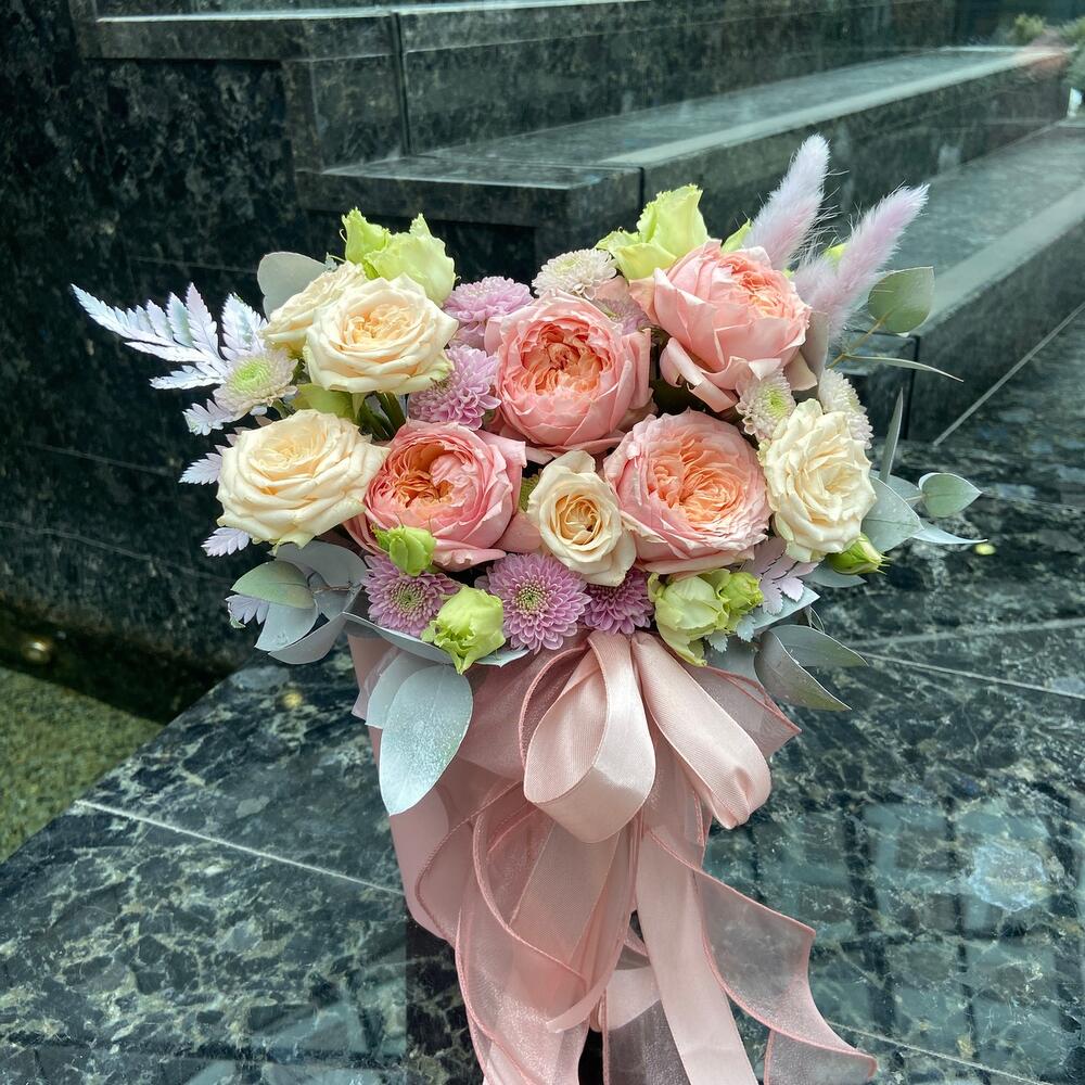 Кустовые розы, Лизиантусы, Розы, Сухоцвет