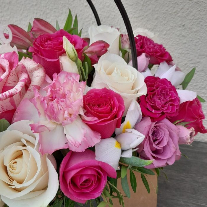 Альстромерии, Гвоздики, Кустовые розы, Лизиантусы, Розы, Хризантемы