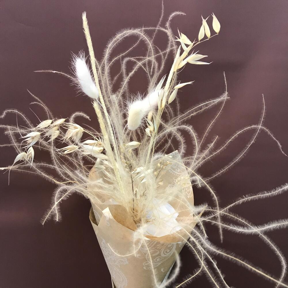 Лагурус – 3 шт.Ковыль – 3 шт.Овес – 2 шт.сухоцветы декоративные микс – 1 шт.