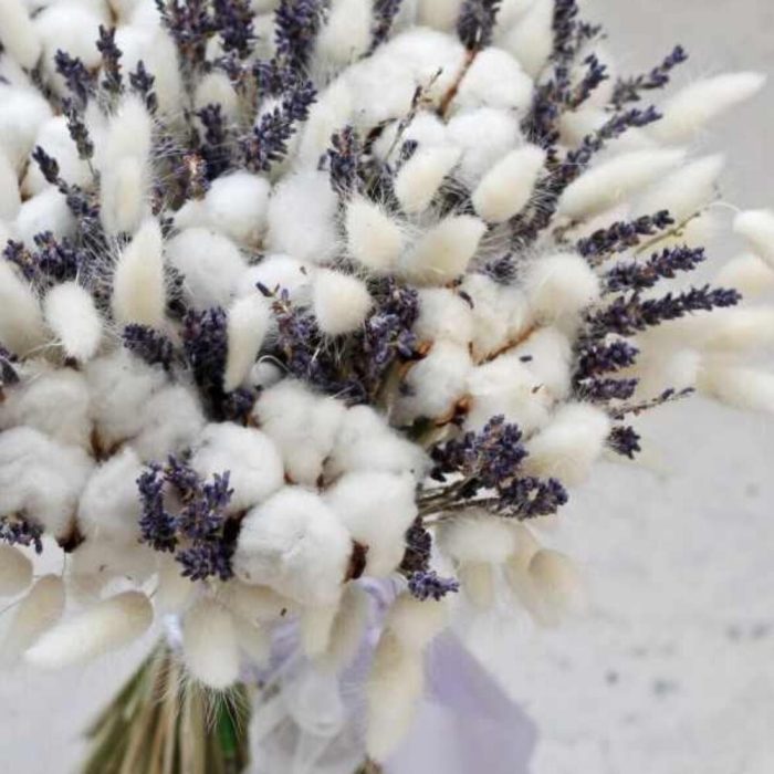Букет с лаванда, лагурусом и хлопком