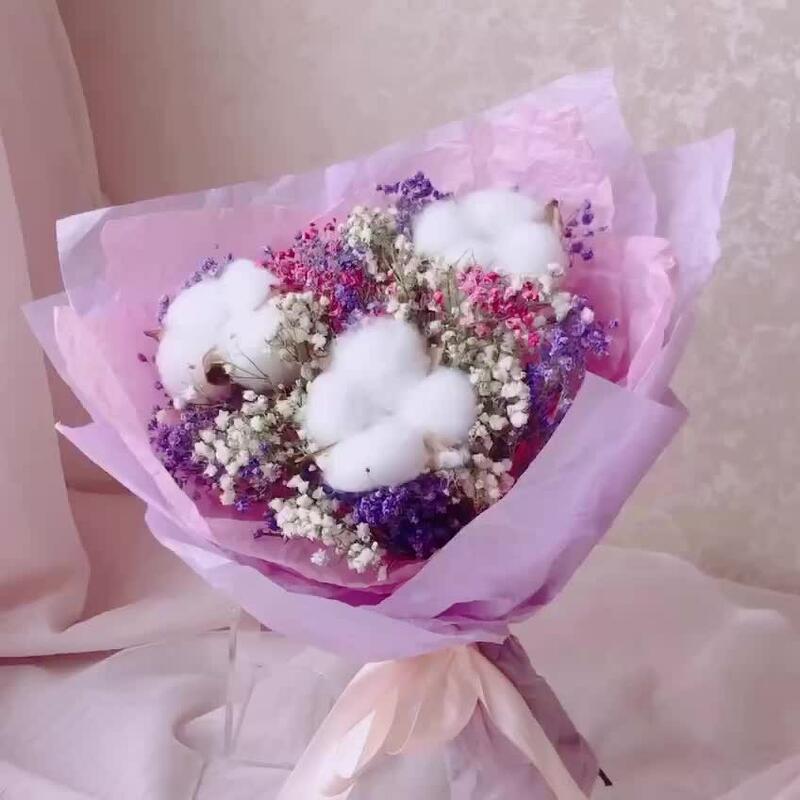 Букет сухоцветов из радужной гипсофилы и хлопка