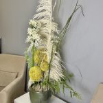 Интерьерная высокая композиция из сухоцветов и декоративных цветов