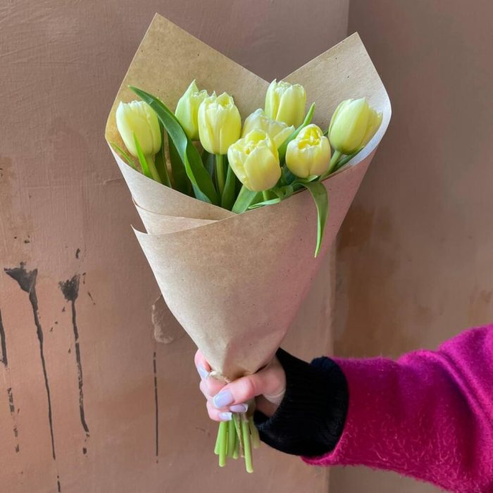 Крафтовая упаковка – 1 шт.лимонный пионовидный тюльпан – 9 шт.