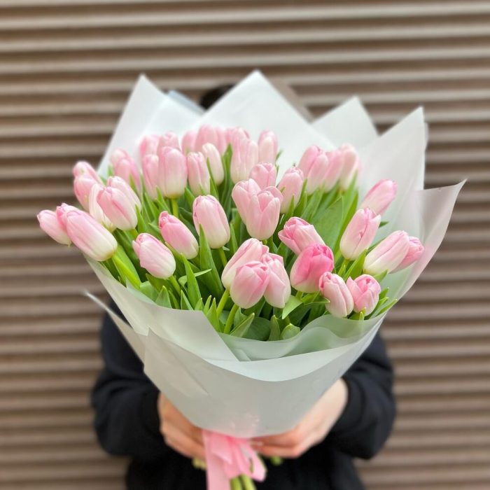 Тюльпан розовый – 51 шт.Пленка матовая – 3 шт.корея пленка – 3 шт.