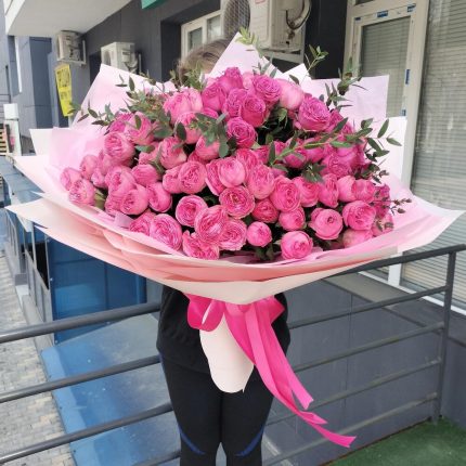 Цветы в коробке с пион розами,сиренью,ранункулюсами,эустомой,тюльпанами,матиолой,пионовидными кустовыми розами